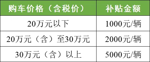 按机动车销售统一发票上的购车价格(含税价),分别给予一次性补贴。具体如下: