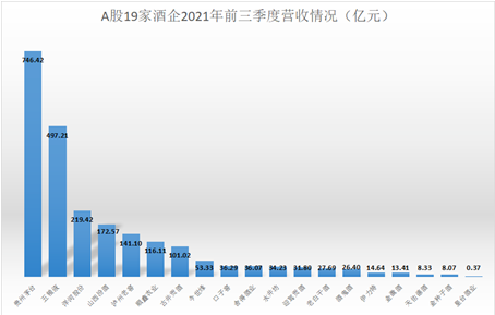 根据A股19家白酒上市公司2021年前三季度业绩,“茅五洋”占据绝对领先位置,营收均在200亿以上,而共有11家酒企营收不到50亿。酒鬼酒以26.40亿元位居14,是处在分化格局的尾端的。