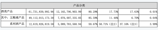 以普五为代表的五粮液产品支撑起五粮液更高的毛利。年报显示,五粮液产品贡献了491亿元营收,占比74.18%,毛利率高达85.59%;系列酒产品则录得营收129亿元,毛利率59.67%。
