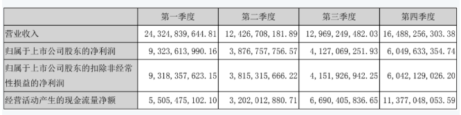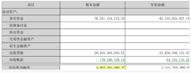 但事实上,五粮液在今年一季度以银行承兑汇票形式收取的经销商打款金额并不少。下图为截至今年一季度期末的五粮液应收票据、应收账款和应收款型融资情况。可以看出五粮液的应收帐款从年初的6419万元激增至1.78亿元的同时,应收款项融资额也水涨船高,从16.4亿元增至28亿元,这说明五粮液为达到促销目的,存在一定赊销行为,允许经销商以大额银行承兑汇票的形式分期打款。