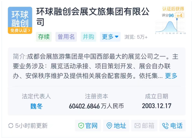 2019年7月10日,邓鸿全资控股的成都环球时代会展旅游发展有限公司(以下简称“环球会展旅游”)与融创西南房地产开发(集团)有限公司(以下简称“融创西南”)共同成立合资公司环球融创。融创西南为融创中国的间接全资附属公司。
