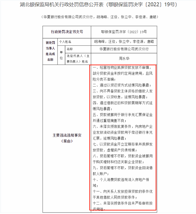 涉“12宗罪”,华夏银行武汉分行被罚670余万
