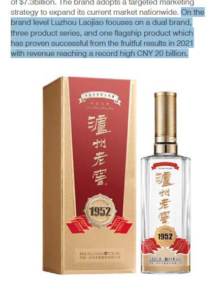 首先,Brand Finance对泸州老窖的评语主要包含对泸州老窖“双品牌、三品系、大单品”战略的肯定,并“在2021年取得丰硕成果”。