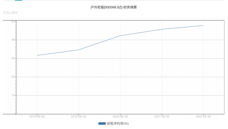 更能表现盈利能力的净利率方面,泸州老窖也秀出了其愈发强大的“钞能力”。今年上半年净利率达到历史新高47.79%。
