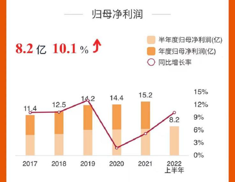 归母净利润方面,上市前后的分化情况与营收数据如出一辙,前三年增速均超过了10%,在2020年大幅下滑之后,随后一直呈现低速增长,2022年上半年的增速虽然有所复苏,但较上市前的高成长性表现依然欠佳。