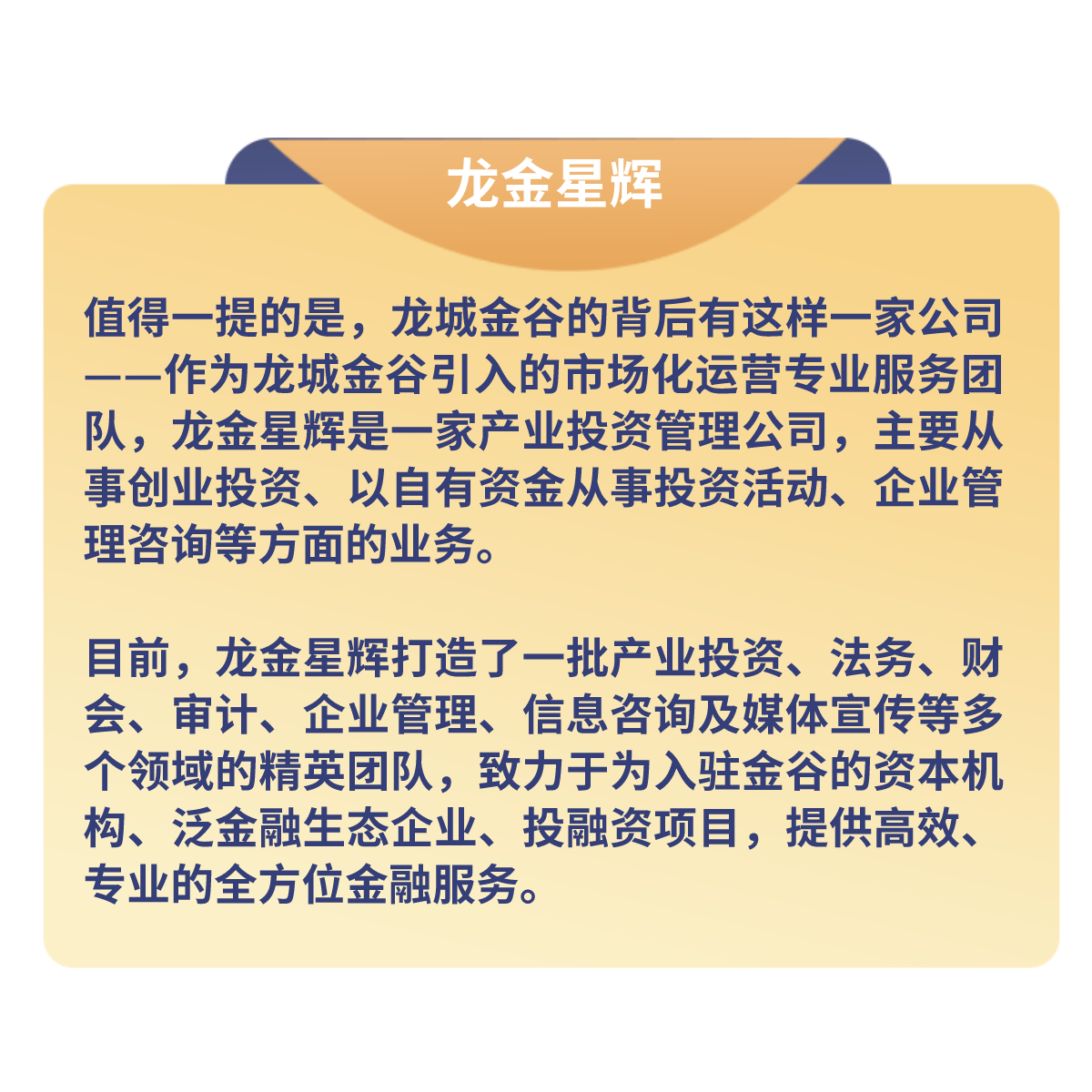 龙城金谷“宜居、宜业、宜游”同步推进,目前内部设有2个现代化多功能路演厅、4个会议中心,综合服务能力不断提升,满足入驻企业多元的商务和生活需求;同时精心打造企业营商环境,通过媒体矩阵多渠道宣传落户政策,做好业务咨询和实地考察,将客户需求想在前面、做到实处,主动协调相关部门,为入驻企业提供工商注册、变更、备案、年检等“一站式”服务,并协助落户企业申报产业扶持奖励,金融服务品牌愈发亮眼。截至今年10月底,龙城金谷(北区)已有225家机构完成落户,管理资本规模达383.38亿元。