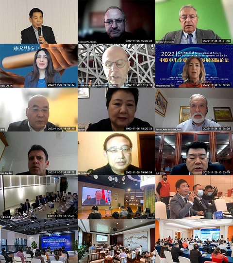 11 月 25 日 -26 日,“2022 中欧中小企业可持续发展国际论坛”在北京举办,来自中国、德国、英国、法国、奥地利、意大利、西班牙、保加利亚、塞浦路斯等国家的专家、学者、企业家同台论道,旨在促进可持续发展理论成果交流,实践经验分享,扶持政策探讨,从而增强中小企业创新意识,提升中小企业核心竞争力,寻求中小企业差异化发展路径。