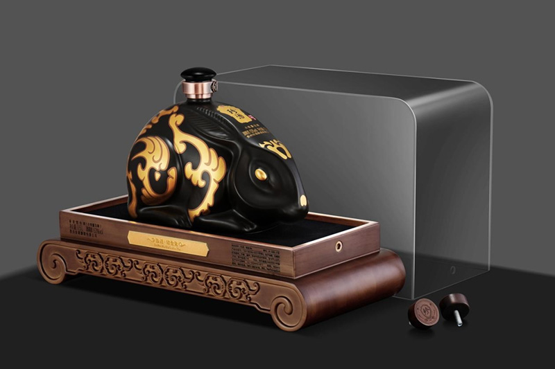 今年,贵州珍酒以观复博物馆《错金银兔形镇》为灵感来源,推出兔年生肖酒“珍酒·错金兔”。珍酒·错金兔器型轮廓分明、线条流畅,兔形呈俯卧状,头部微抬,兔鼻隆起,双目圆睁,兔耳贴背,弓背丰臀,前肢点地,后腿弯曲,似随时一跃而起。