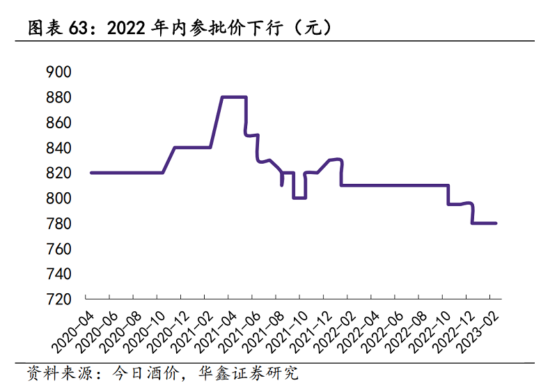 从价的角度来看,其站位高端市场的内参系列批价持续下行,经销商渠道价格一度只有800元,与千元以上的零售价之间存在严重倒挂。今日酒价数据显示,目前内参一批价稳定在750元/瓶。