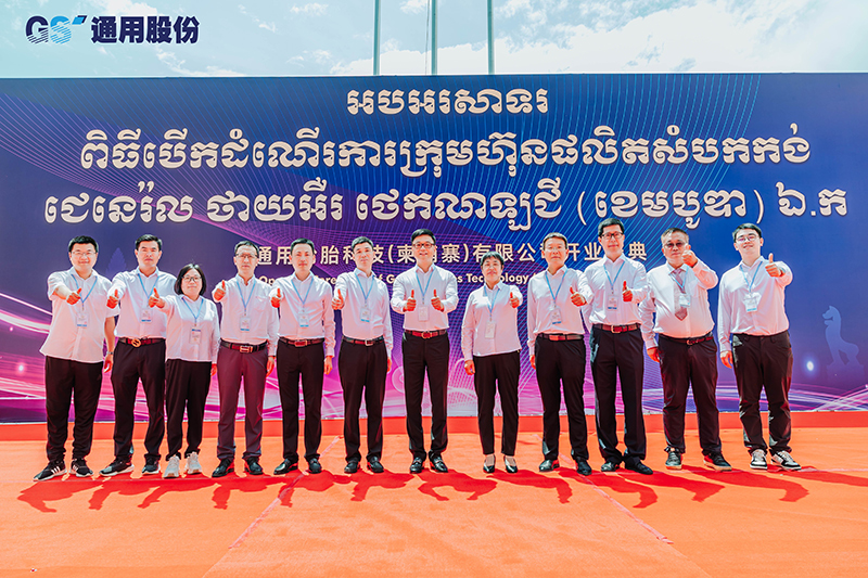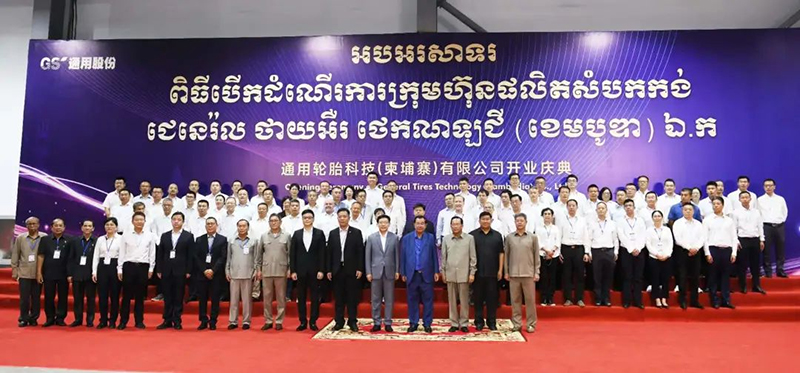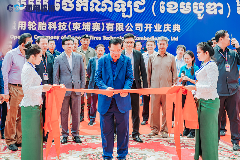 2023年5月22日,“奋进新高地 启航新征程”——通用轮胎科技(柬埔寨)有限公司开业庆典在柬埔寨西港经济特区隆重举行。柬埔寨首相洪森亲临现场,中国驻柬埔寨大使王文天、中国驻柬埔寨大使馆参赞邬国权等中柬两国政府领导及通用股份董事长顾萃、柬埔寨基地全体员工共同参加了活动,见证通用股份国际化战略布局中的又一重要里程碑。