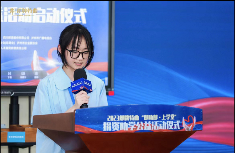 如今,朱錡顺利考入了西南医科大学,在2023年郎牌特曲“郎助郎上学堂”公益活动现场,朱錡作为受助学生代表,表达了自己的感恩之心,并表示将努力学习,做一个贡献于社会的人,用自己的实际行动回报社会。