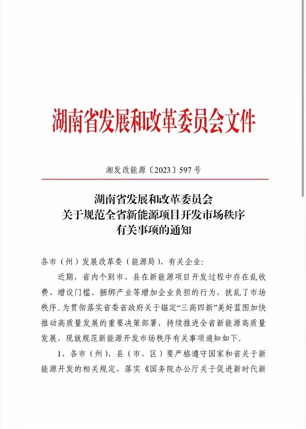 湖南省发改委还提出,请各市发展改革委对照以上情况,抓紧组织对本地区新能源开发市场秩序开展自查自纠,并对发现的问题立即进行整改,相关自查整改情况形成书面材料,于9月25日前上报。