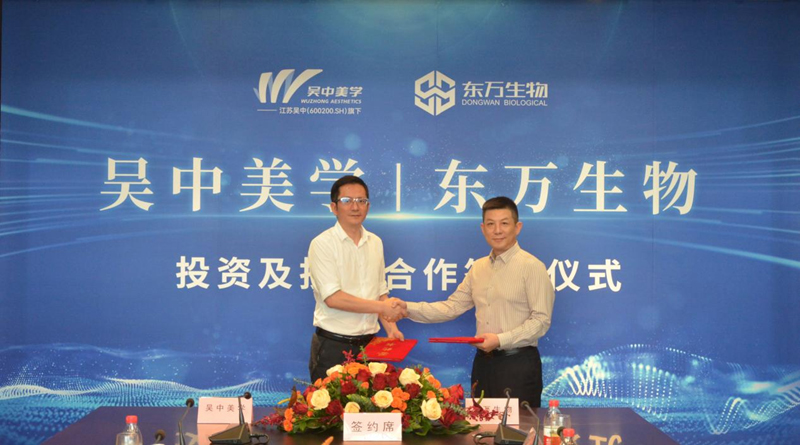 近日,南京东万生物技术有限公司与江苏吴中医药发展股份有限公司的全资子公司江苏吴中美学生物科技有限公司签署了《投资及技术合作协议》,授权重组人胶原蛋白原料在合作领域内的独家经销权与独家开发权,并与吴中美学达成技术合作。