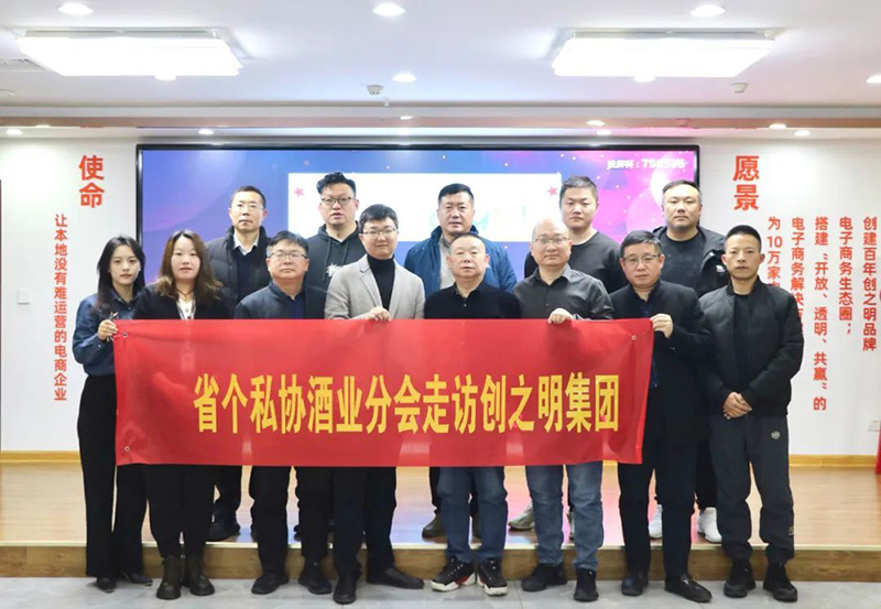 11月14日,山东省个体私营企业协会酒业分会会长陈勇、秘书长欧阳千里带队走访山东创之明集团,创之明集团副总经理黄强、商学院经理段雪洁、淘宝直播经理袁平等热情接待。