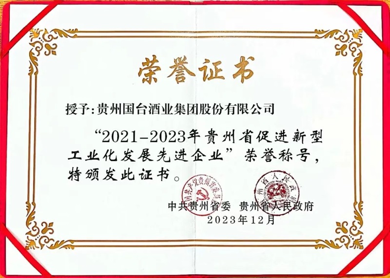 除获评“2023年度智能制造示范工厂”揭榜单位之外,国台酒业智能酿造的实践还作为贵州新型工业化的榜样,被授予了先进企业称号,得到贵州省委、省政府的表彰。