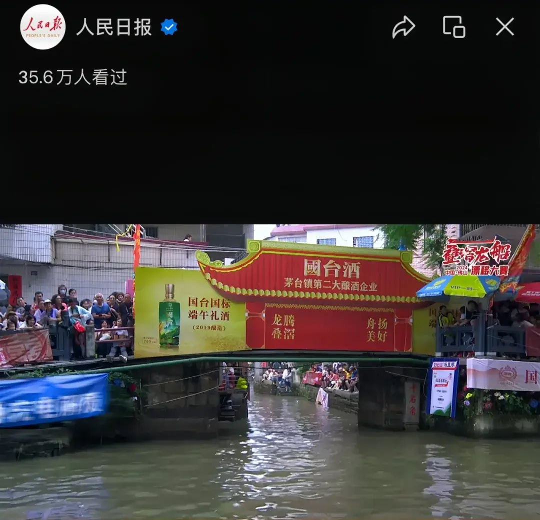 2023年,国台首次冠名赞助叠滘龙船漂移赛,赛事火爆出圈,全网关注度超5亿次,近百家媒体对赛事进行直播;话题#国台酒叠滘龙舟漂移太火了#登榜微博热搜;千万网友线上展开热烈互动。
