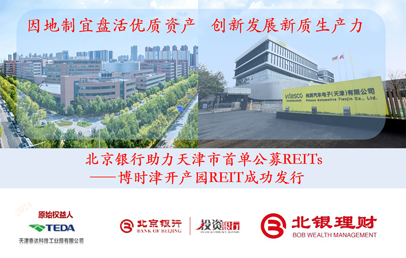 博时津开产园REIT项目底层资产为天津经开区天河数字产业园和大陆汽车厂房。天河数字产业园是天津市数字经济的核心区域及天河超算所在地,大陆汽车厂房园区聚集世界领先的汽车动力总成研发、生产企业,基础资产具备领先性和示范性。产业园基础设施是发展新质生产力和服务科技创新的重要载体,也是公募REITs市场的重要组成部分。本项目借助资本市场创新服务实体经济,盘活天津市优质载体资源,支持战略性新兴产业发展,打造数字经济先进产业集群,因地制宜助力新质生产力发展。北京银行现已实现京津冀公募REITs首发项目服务全覆盖,以实际行动为京津冀一体化发展贡献金融力量,助力基础设施领域焕发活力。
