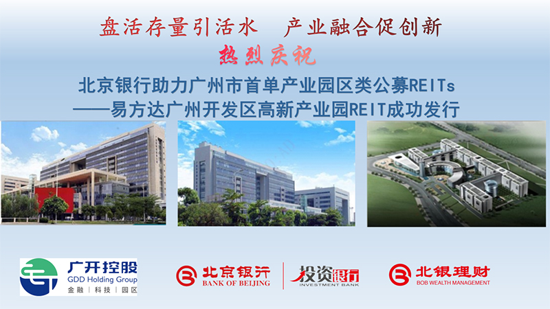 易方达广州开发区高新产业园REIT项目底层资产包括创新基地、创新大厦园区和创意大厦园区,总面积约27万平米,均位于广州开发区科学城核心区域,是广州开发区整合科技创新服务资源、推动创新创业、构筑科技创新体系的关键园区,吸引了生物医药、信息技术、新能源新材料等新兴领域的众多高新技术企业入驻。北京银行努力构建创新发展格局,积极参与推动粤港澳大湾区制度创新先行示范区发展。本项目的发行将有利于吸引社会长期资金投入广州开发区基础设施建设,形成基建投资的良性循环,助力广州开发区吸引更多优质创新企业入驻,促进产业融合与创新。