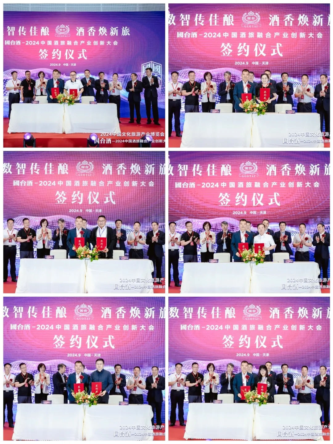 9月14日,作为2024中国文化旅游产业博览会的亮点活动之一,国台酒-2024中国酒旅融合产业创新大会在天津圆满举行。会上,天士力集团副总裁、国台数智酒业集团副董事长兼总经理叶正良代表国台分别与天津携程国际旅行社有限公司、南京途牛国际旅行社有限公司、天津景鹏旅游集团有限公司、山东天成国际旅行社、茂名市国旅国际旅行社有限公司、河南南湖国际旅行社有限公司等举行了酒旅融合战略合作伙伴签约仪式。
